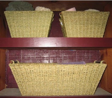 cores e tipos. Use cestos de vime ou caixas organizadoras para ajudar na